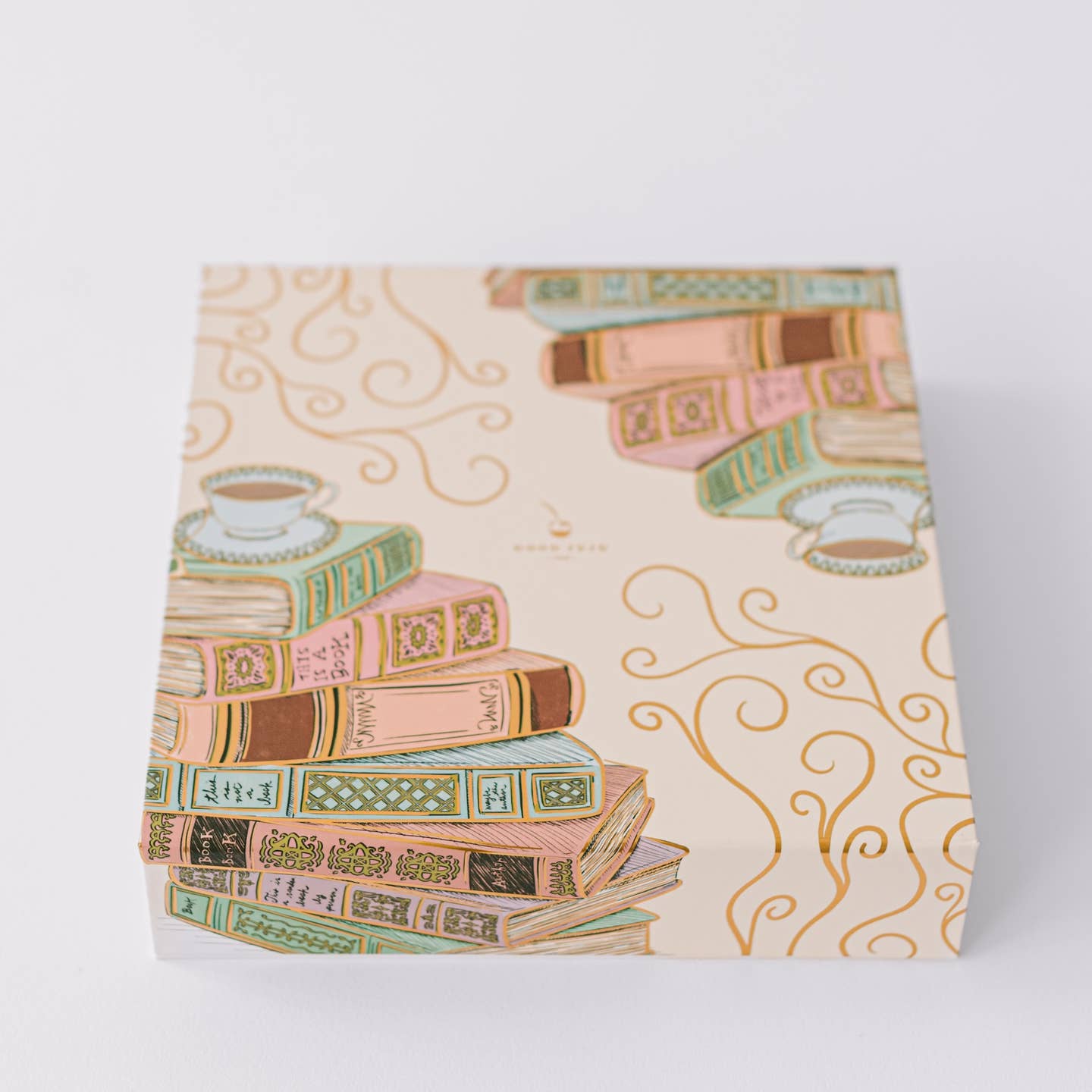 Gorgeous gold-foiled keepsake box with magnetic flap closure including: