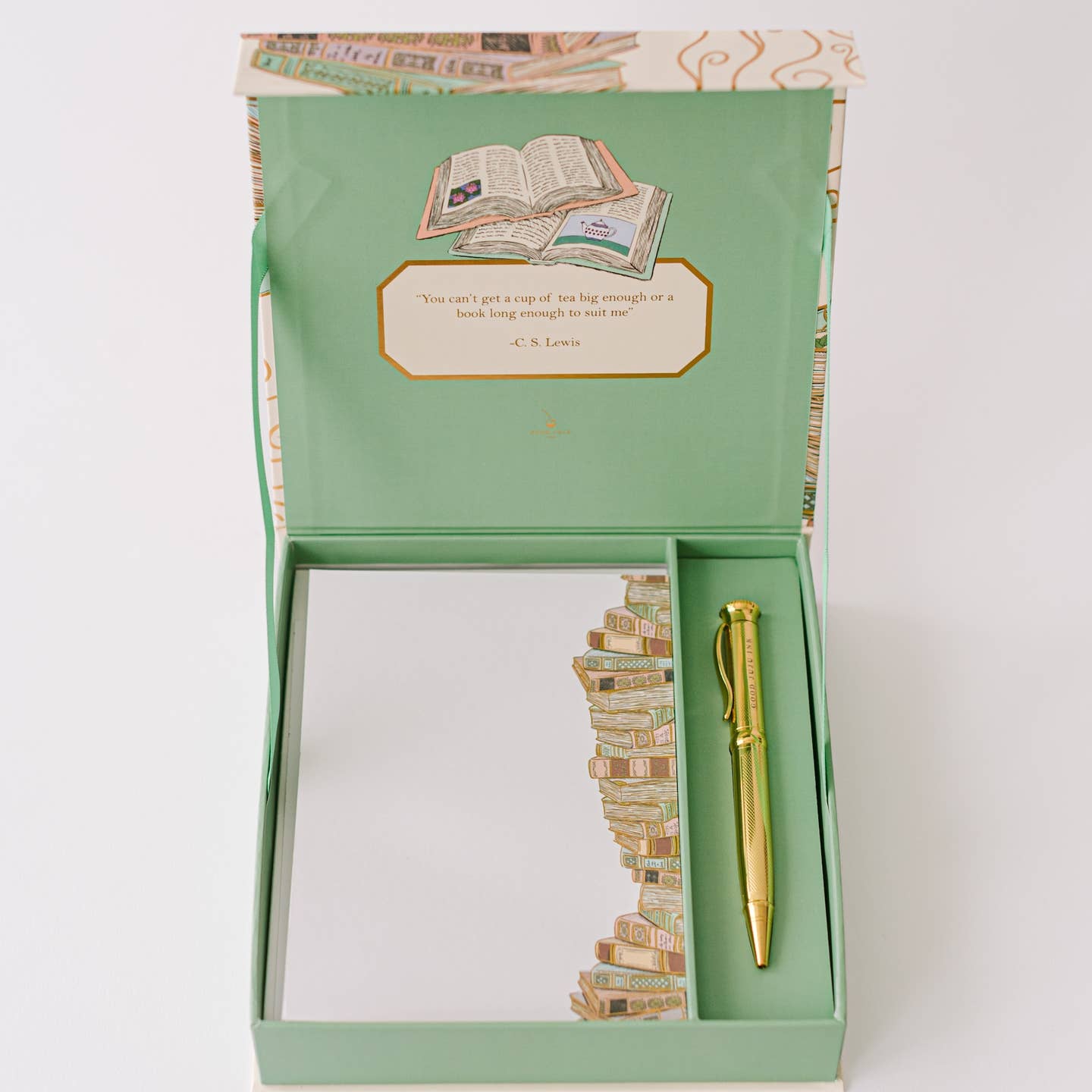 - 20 gold foil-stamped, ultra luxurious duplexed writing sheets