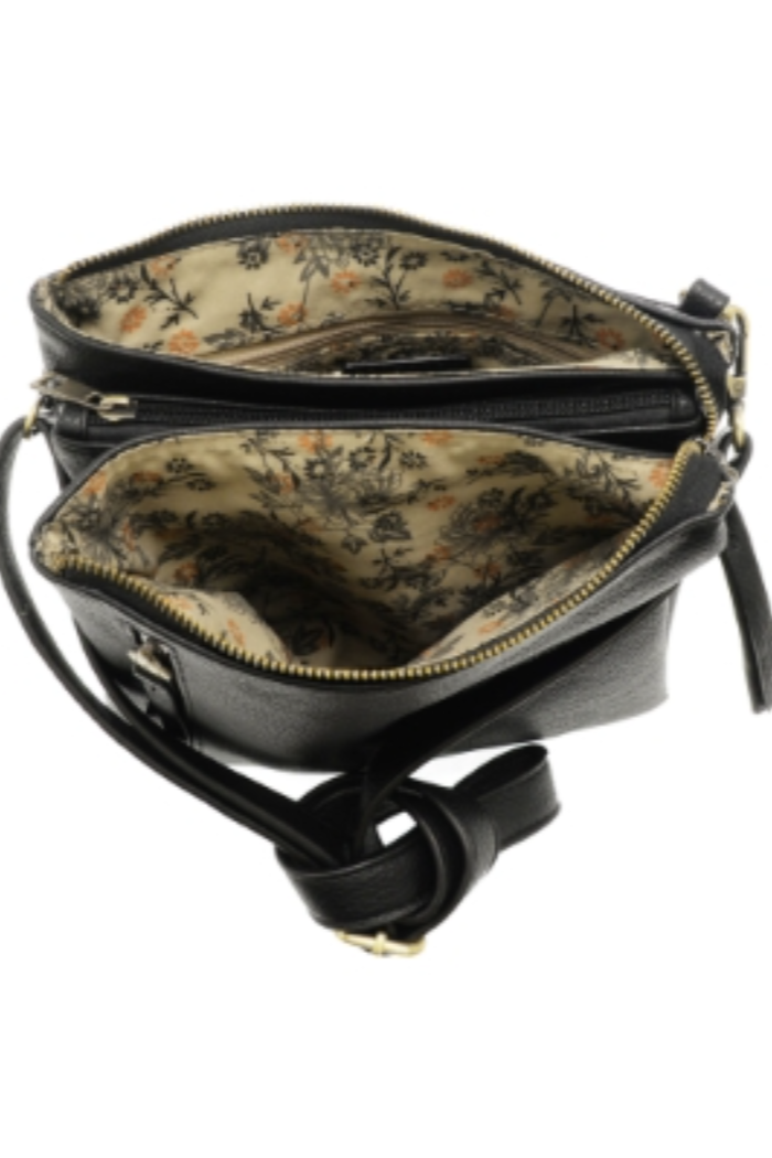 Your search for the perfect crossbody has ended! Roomy enough for a large wallet, large phone, make-up and so much more. This compact bag expands with three separate compartments to fit everything you might need to carry. Super versatile, looks great for work, the weekends and stylish enough to head out in the evening, too. The sleek front zip pocket keeps your phone or keys within easy reach to keep you organized on the go.