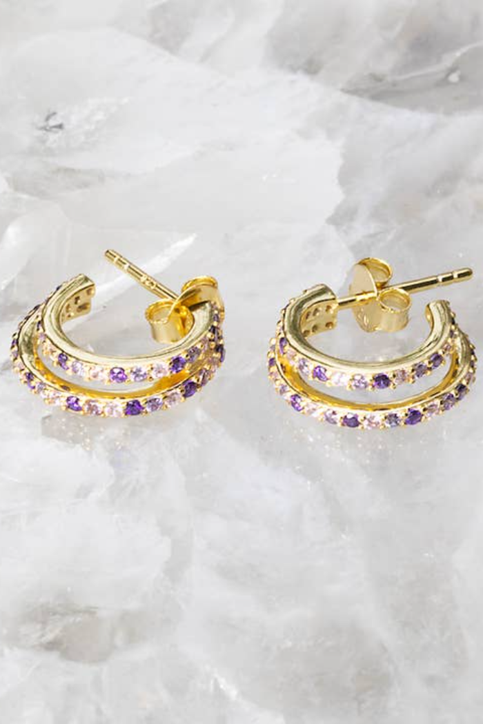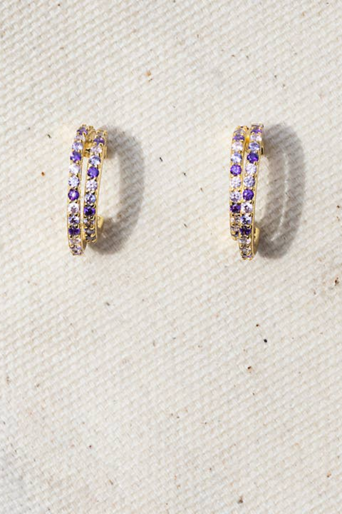 A tiny double huggie design in 14K vermeil with stunning multi lavender shades. A classic everyday earring with a twist.