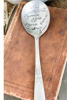 PLEASE NOTE! These are very old spoons and should be wiped clean with a damp rag. They should not be placed in the dishwasher or be soaked in any water as it can ruin the metal/ wording.