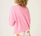 Playful and très cozy, this bright pink sweater is a soft nod to your dream Parisian breakfast. Crafted from our fuzzy snuggle knit with a boucle “Café Et Croissants” graphic, it’s the ultimate layering piece for croissant runs, coffee dates, and slow weekend mornings.