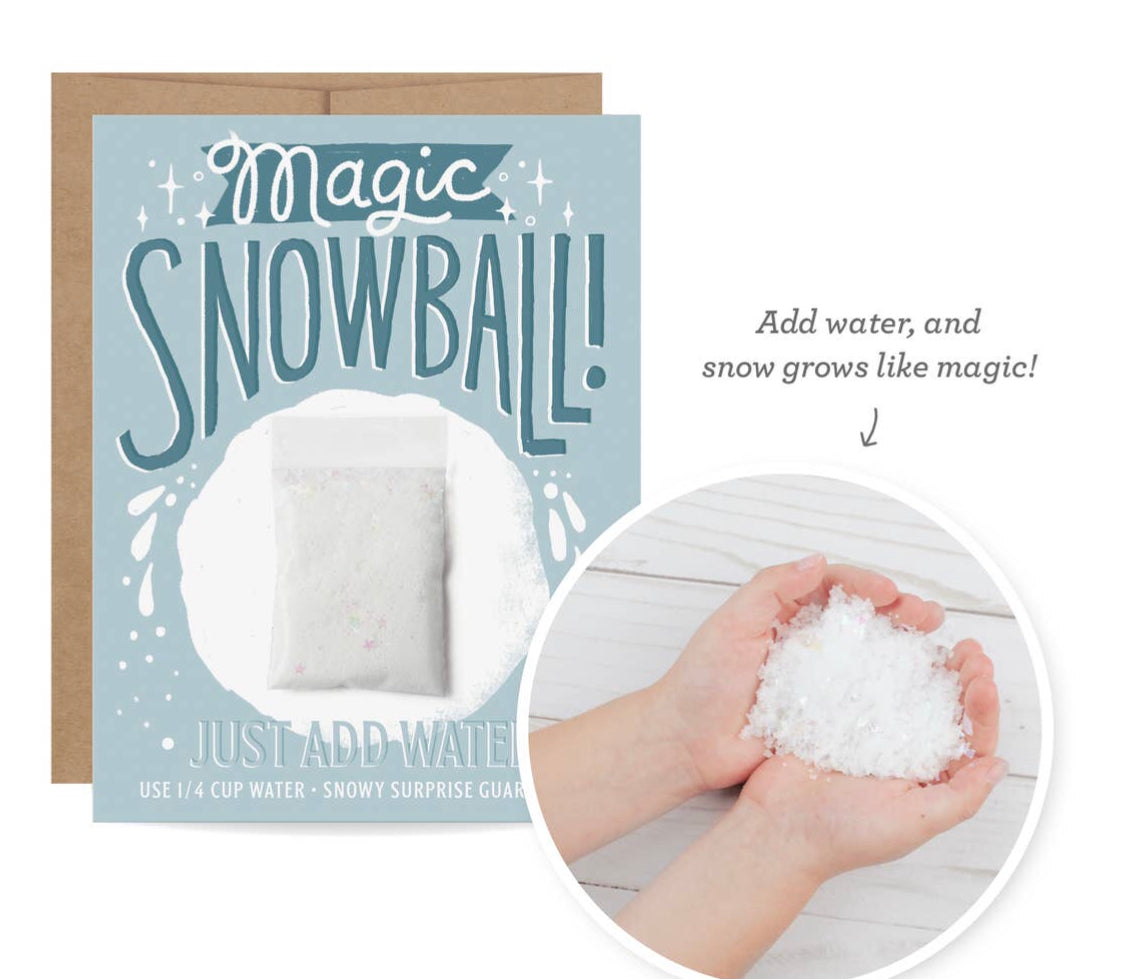 What if you could mail someone a snowball? Just add 1/4 cup of water, and be prepared for a snowy surprise. Snow will grow to 100x its size (roughly the size of a snowball). This card is so much fun to send to kids, or to family and friends who live in warmer climates. L 4.5" x W 5.75" x H 0.25"