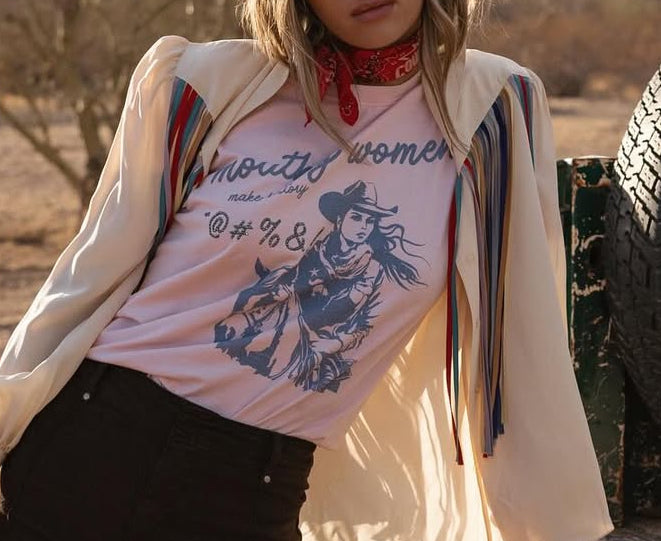 Mouthy women make history tee. Made in the US and adorned with crystals.